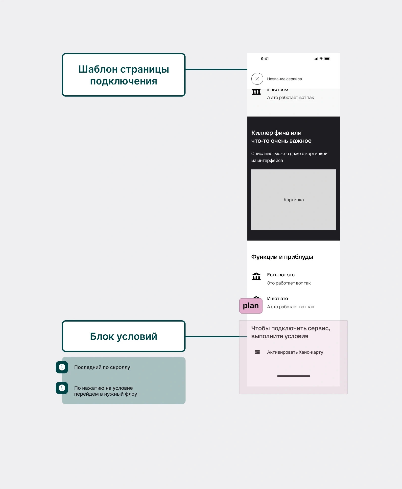 Вынесли условия в отдельный блок внизу страницы. В него положили кнопку выпуска карты.